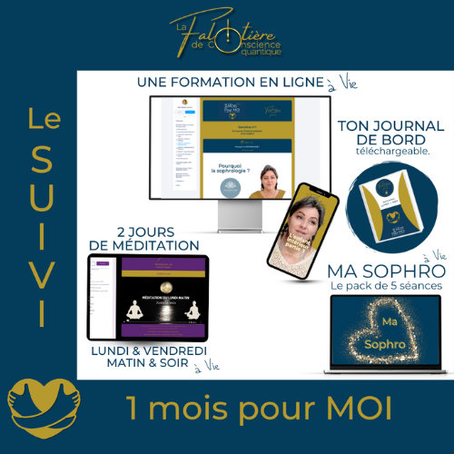 Un mois pour MOI, c'est reprendre tout depuis le début, pour y voir enfin plus claire sur notre mal-être ou notre difficulté à lâcher prise, à être pleinement joyeux, confiant, détendu, et dans un amour-propre à toute épreuve ! Un mois pour entreprendre un nouveau chemin, un mois en toute autonomie quant à votre organisation, car même les séances sont en audio. Ce mois se trouve aussi être le premier mois du suivi "Le B.A.BA de l'être-là", donc si le cœur vous en dit, la suite sera possible.